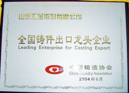 "我公司獲“全國鑄件出口龍頭企業(yè)”稱號"