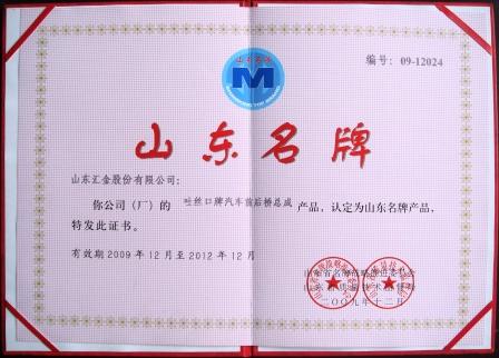 公司汽車前后橋總成產品再獲山東名牌產品稱號